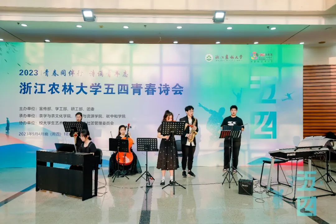 詩會通過詩歌朗誦、舞蹈、歌曲、器樂合奏和視頻等多種形式的巧妙融合,展現出我校青年師生在習近平新時代中國特色社會主義思想指引下,傳承五四精神,自信自強、守正創新,踔厲奮發、勇毅前行,忠誠盡職、奮勇爭先的堅定信念和矢志決心。