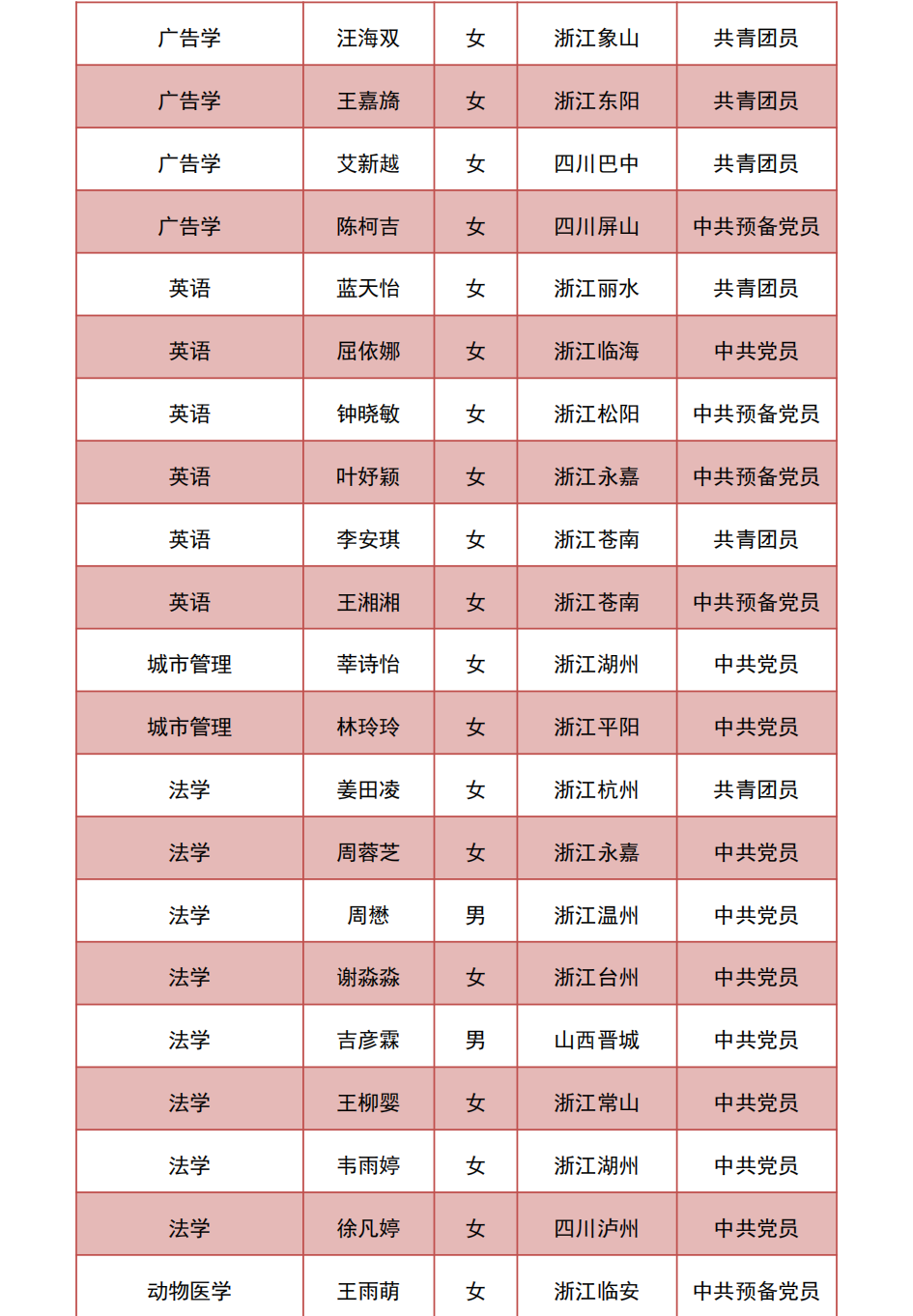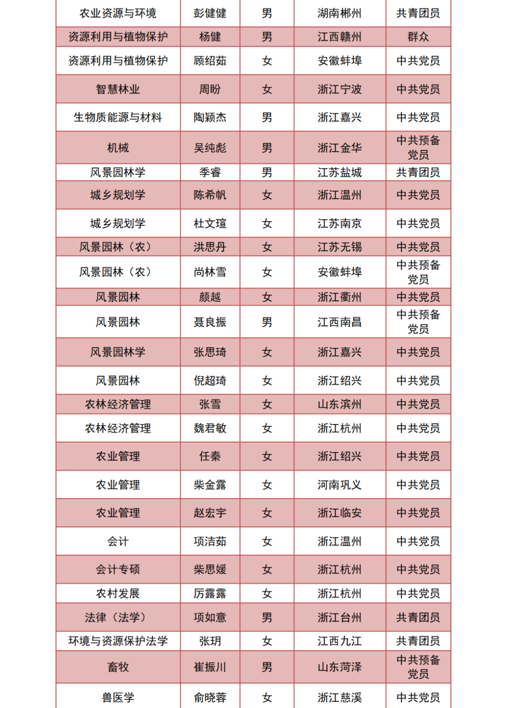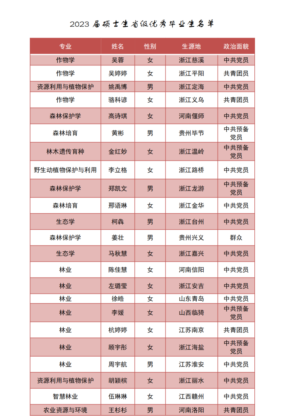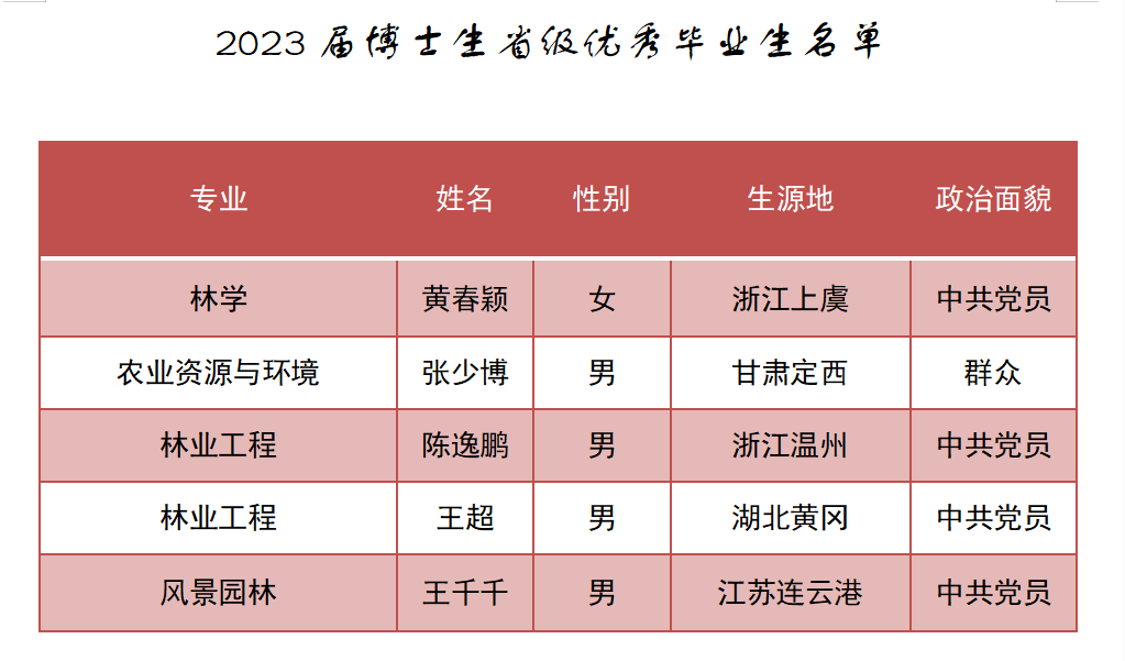 近日,浙江省教育廳辦公室公布了2023屆浙江省普通高等學校優秀畢業生評選結果。浙江農林大學共有166名本科畢業生,68名碩士畢業生,5名博士畢業生獲得“2023屆浙江省普通高等學校優秀畢業生”榮譽稱號。