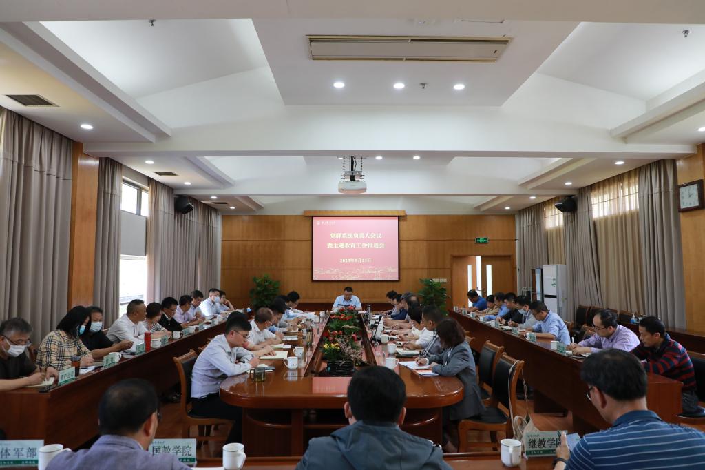 5月23日,校黨委書記朱斌主持召開黨群系統負責人會議暨主題教育工作推進會。校黨委副書記馮尚申、校紀委書記包松永、校黨委委員繆魯加出席會議。