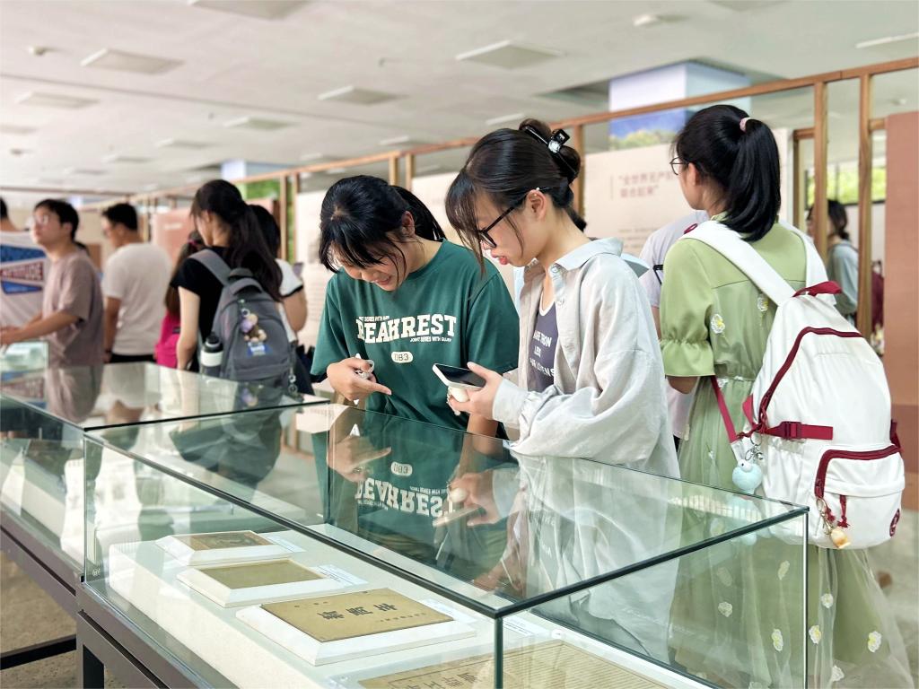 參加展覽的領(lǐng)導(dǎo)嘉賓和師生代表在學(xué)生講解員的引導(dǎo)下步入展廳,參觀展品和各項(xiàng)展陳。一件件革命文物、一張張歷史圖片、一段段文字描述,跨越時(shí)間的長(zhǎng)河,生動(dòng)地將黨史呈現(xiàn)在大家面前,通過(guò)文字展板、歷史圖片、文物展品、數(shù)字展覽相結(jié)合的方式,在展覽中大家真切感受到了浙江作為中國(guó)革命紅船起航地、改革開(kāi)放先行地、習(xí)近平新時(shí)代中國(guó)特色社會(huì)主義思想重要萌發(fā)地在百年黨史中的重要地位。