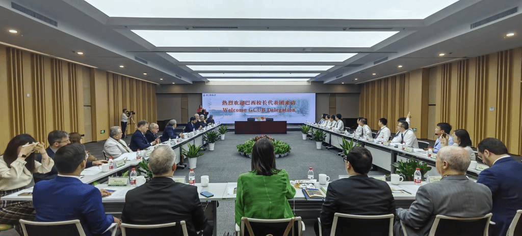 代表團(tuán)團(tuán)長(zhǎng)、巴西大學(xué)國(guó)際合作集團(tuán)執(zhí)行主席羅薩娜·席爾瓦對(duì)學(xué)校的接待表示感謝,并簡(jiǎn)要介紹了巴西大學(xué)國(guó)際合作集團(tuán)。她指出,中巴應(yīng)在教育領(lǐng)域加強(qiáng)合作,在基礎(chǔ)語(yǔ)言層面互學(xué)互鑒,同時(shí)深化各專(zhuān)業(yè)領(lǐng)域的科研合作與交流。