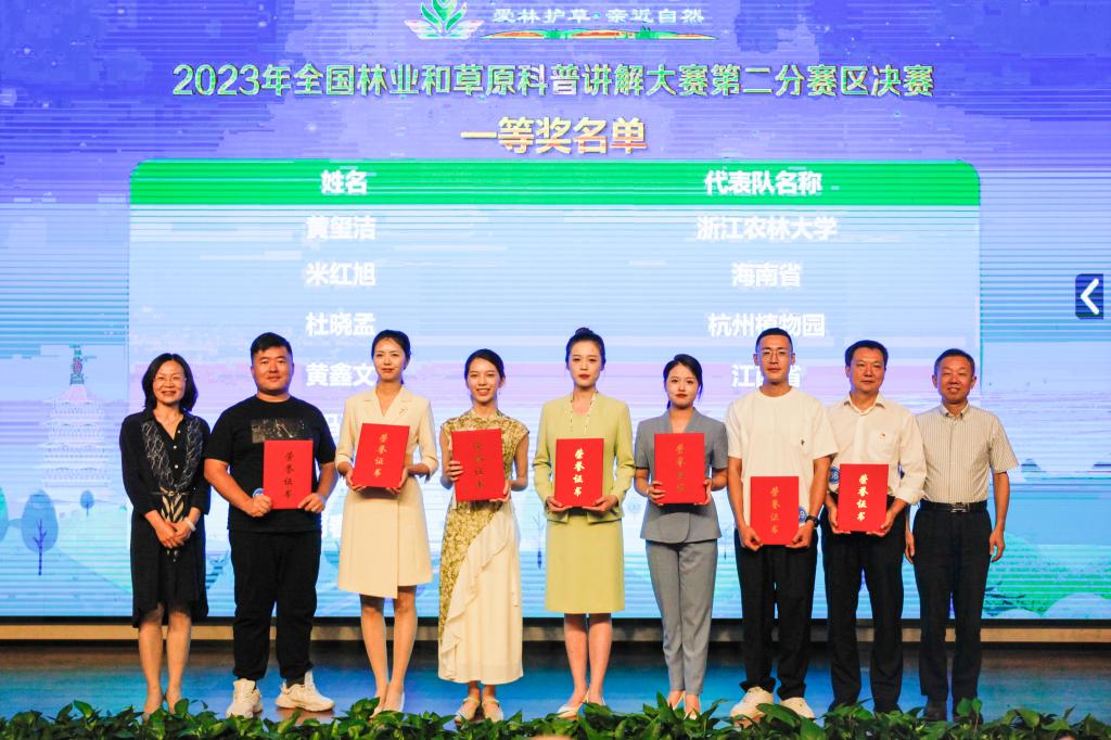 據(jù)介紹,本次比賽由國家林業(yè)與草原局主辦、浙江省林業(yè)局和浙江農(nóng)林大學(xué)共同承辦,以“愛林護(hù)草、親近自然”為主題,旨在普及林草科技知識(shí)、促進(jìn)全民科學(xué)素質(zhì)提升、加快實(shí)現(xiàn)高水平科技自立自強(qiáng)。本次比賽獲得一、二等獎(jiǎng)的18名選手,將參加“2023年全國林業(yè)和草原科普講解大賽總決賽”。
