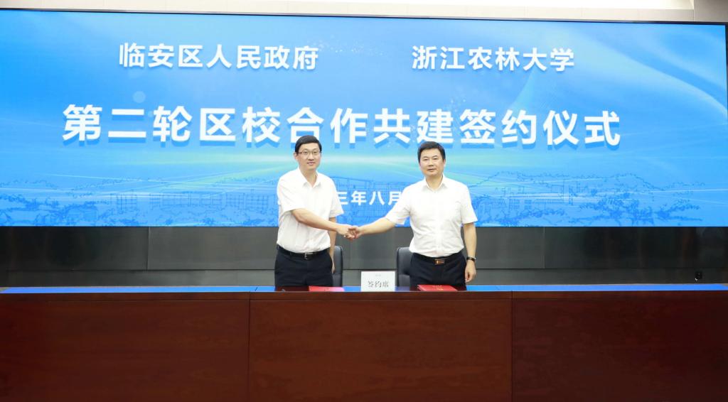校地共建謀發展,合作共贏促共富。8月30日,臨安區人民政府與浙江農林大學第二輪區校合作交流會在東湖校區國重大樓召開。雙方簽署了第二輪區校合作共建協議,推動區校融合發展再上新臺階,開創新局面。