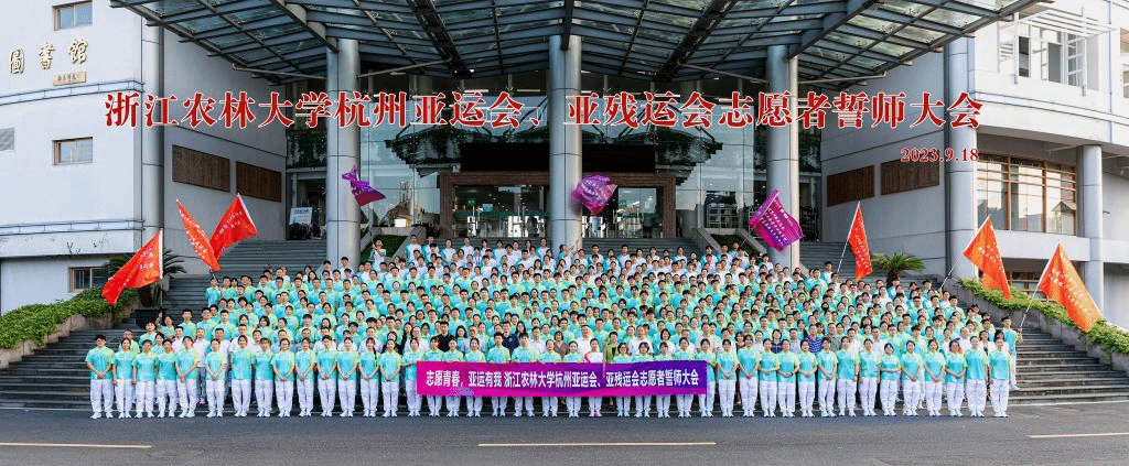 同心迎亞運,青春志愿行!我校826名“小青荷”將拿出“決戰決勝”的姿態、保持“至臻至善”的心態、提振“同心同力”的狀態,在亞運盛會中擦亮浙江農林大學“小青荷”的金名片,助力講好中國故事、亞運故事,向亞洲和全世界展示新時代中國青年昂揚的青春風采!