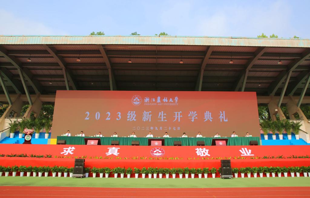 9月27日上午,浙江農(nóng)林大學(xué)2023級新生開學(xué)典禮在東湖校區(qū)隆重舉行。5215名本科生、1819名碩博生和233名留學(xué)生滿懷憧憬與喜悅相聚浙農(nóng)林大,以昂揚(yáng)奮斗的青春姿態(tài),共同奔赴奮斗青春的新篇章。