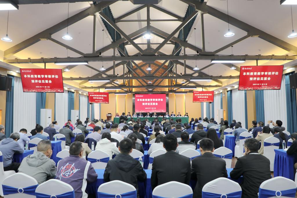沈月琴從歷史沿革、基本信息、學院設置、學科專業、人才隊伍和教學科研平臺等方面介紹了學校概況。她介紹了學校圍繞“一流本科”建設,在立德樹人、一流專業課程體系建設、師資隊伍建設、教育教學資源數字化建設、產教深度融合發展、體制機制創新等方面開展的一系列本科教育教學改革工作,并針對預評估的籌備和落實進行了簡要說明。