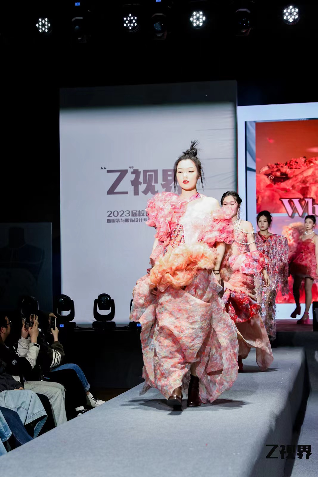 每年畢業季,藝術設計學院服裝秀和數媒之夜動態畢業設計展演會都是學校一道靚麗的風景線。服裝與服飾設計專業畢業生以多元的視角,將日常專業所學和思考融入生態秀主題當中。學生藝術作品圍繞國潮、自然、社會關懷,關注人的心靈慰藉、自然生態與可持續設計,以及數字時代的迭代元素,展開一系列的創作設計,為全校師生呈現了一場具有生態環保數字化意義的視覺盛宴,傳達出的審美意識和藝術表達已成為溝通廣大學子與服裝生態的橋梁。其中,秀場近70位模特來自我校各個專業,在展現青春活力的同時,也身體力行的表達了他們對學校生態環保的支持與認同。
