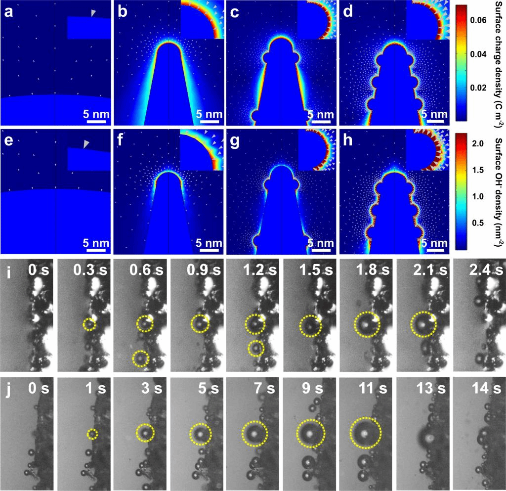 進(jìn)一步結(jié)合實(shí)驗(yàn)結(jié)果和理論模擬發(fā)現(xiàn)Fe和F雙摻雜可協(xié)同調(diào)節(jié)CoO的電子結(jié)構(gòu),改善金屬-氧共價性和促進(jìn)晶格氧活化,激活LOM機(jī)制。此外,F(xiàn)e摻雜增強(qiáng)尖端電場和鄰近效應(yīng),在催化劑表面高效富集OH?,提高了傳質(zhì)動力學(xué),優(yōu)化了LOM反應(yīng)能壘,促進(jìn)了O2的解吸。這些結(jié)果為設(shè)計高效的OER電催化劑開辟了一條新途徑,也加深了對催化劑構(gòu)效關(guān)系和電催化機(jī)理的理解。更廣泛地說,這項(xiàng)工作對其他催化反應(yīng)以及涉及氧化學(xué)或傳質(zhì)的能量存儲系統(tǒng)的研究具有重要借鑒意義。