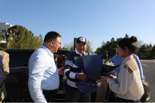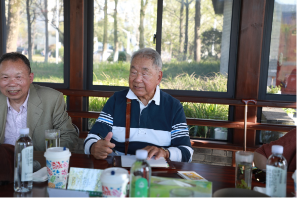 座談會前,學生代表為陳每文先生獻上鮮花。陳每文先生攜家人步行至“飲水思源”碑,講述了陳年井箍遷移和設立“飲水思源”碑的故事,感懷故園,感念慈恩。
