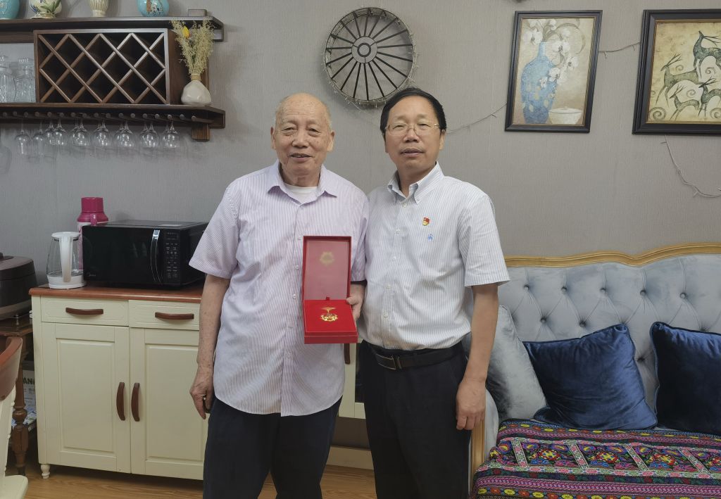 馮尚申一行慰問了老黨員代表周漢祥和教師黨員代表儲小旵和張俊飚。在周漢祥家里,馮尚申為其頒發(fā)了“光榮在黨50年”紀(jì)念章,感謝他對學(xué)校建設(shè)發(fā)展作出的貢獻(xiàn),并祝福老同志健康幸福。