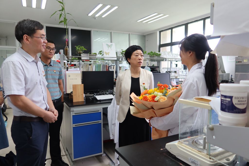 朱斌一行慰問了全國優(yōu)秀共產(chǎn)黨員黃堅(jiān)欽教授和國家級人才沈曉萍副教授,對他們潛心鉆研在科技攻堅(jiān)一線,推動成果轉(zhuǎn)化,助推一流學(xué)科建設(shè)給予充分肯定,并鼓勵廣大教職員工在本職崗位上創(chuàng)先爭優(yōu),再創(chuàng)佳績。