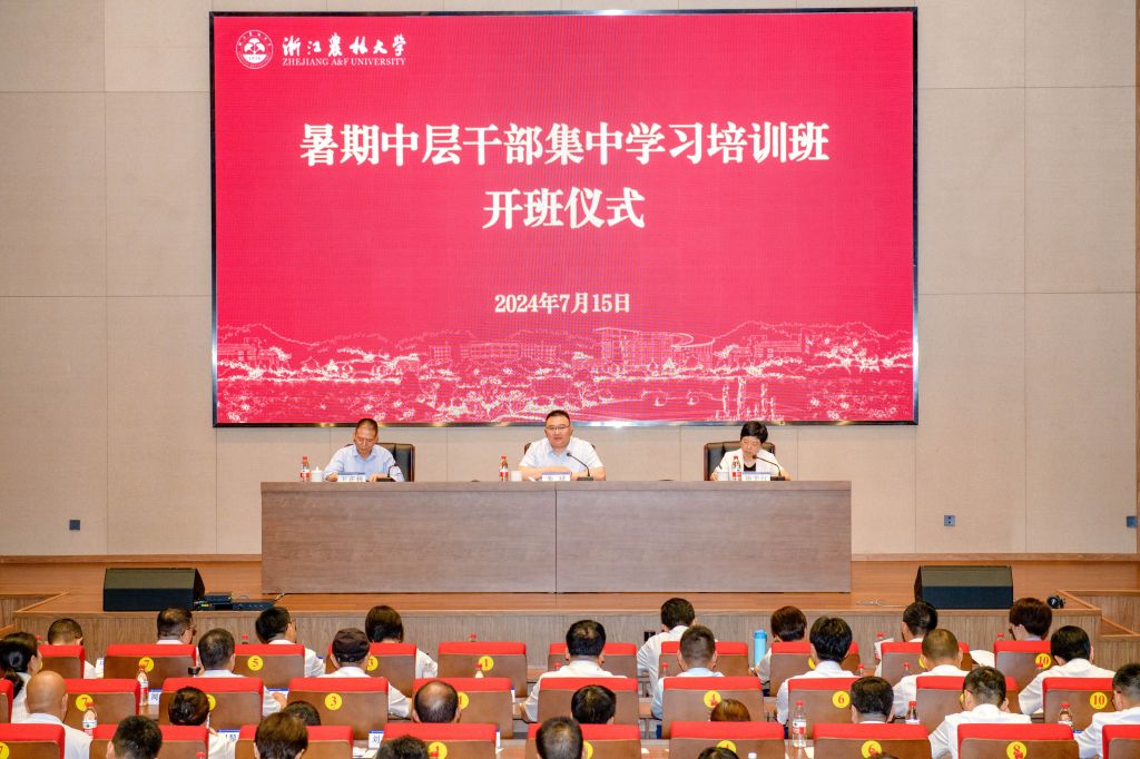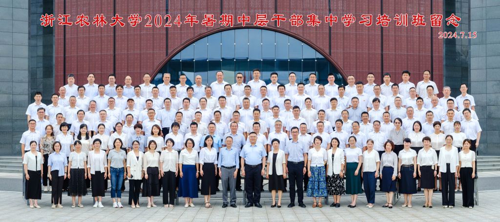 7月15-18日,浙江農林大學暑期中層干部集中學習培訓班在諸暨楓橋學院舉行。校黨委書記朱斌、校黨委副書記施美紅分別出席開班和結業儀式并講話。全體中層干部參加培訓。