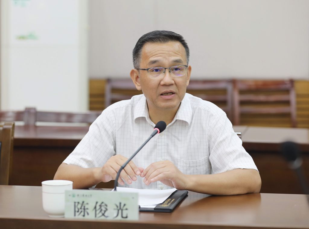 朱斌對陳俊光局長一行來校表示歡迎,對廣東省林業局、浙江省林業局長期以來對學校的關心支持表示感謝,并介紹了學校辦學歷程、辦學特色、人才培養、科學研究以及社會服務等方面的情況。