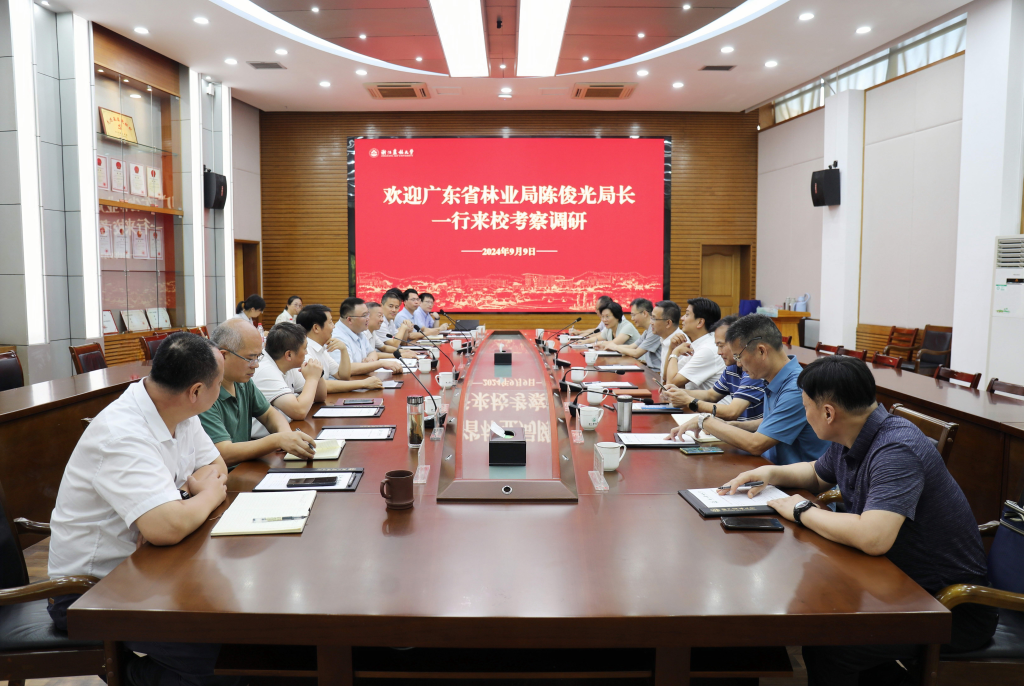 9月9日,廣東省林業局局長陳俊光、浙江省林業局副局長李永勝等一行來校考察調研。校黨委書記朱斌、副校長吳家勝、校黨委原副書記方偉陪同調研。
