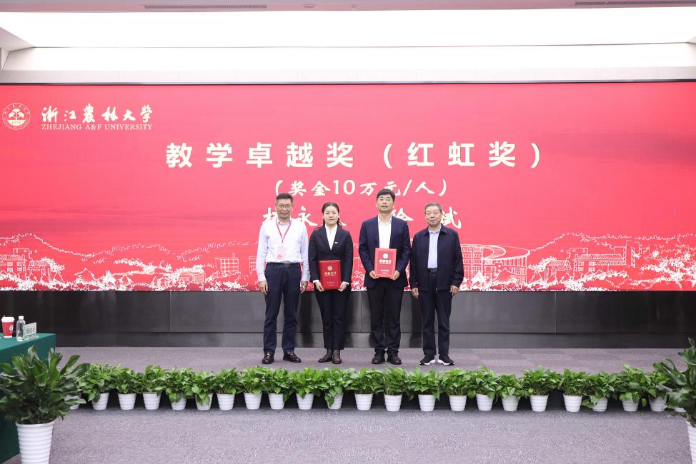 大會表彰了2024年度本科卓越教學教師(“紅虹”獎教金獲得者)。胡祖吉宣讀表彰文件,方志剛和周維亮為獲“教學卓越獎”的老師頒獎;“紅虹”獎教金捐贈方代表、經濟林87級校友、上海紅虹木業有限公司總經理丁岳軍為獲“教學樹人獎”和“教學英才獎”的老師頒獎。