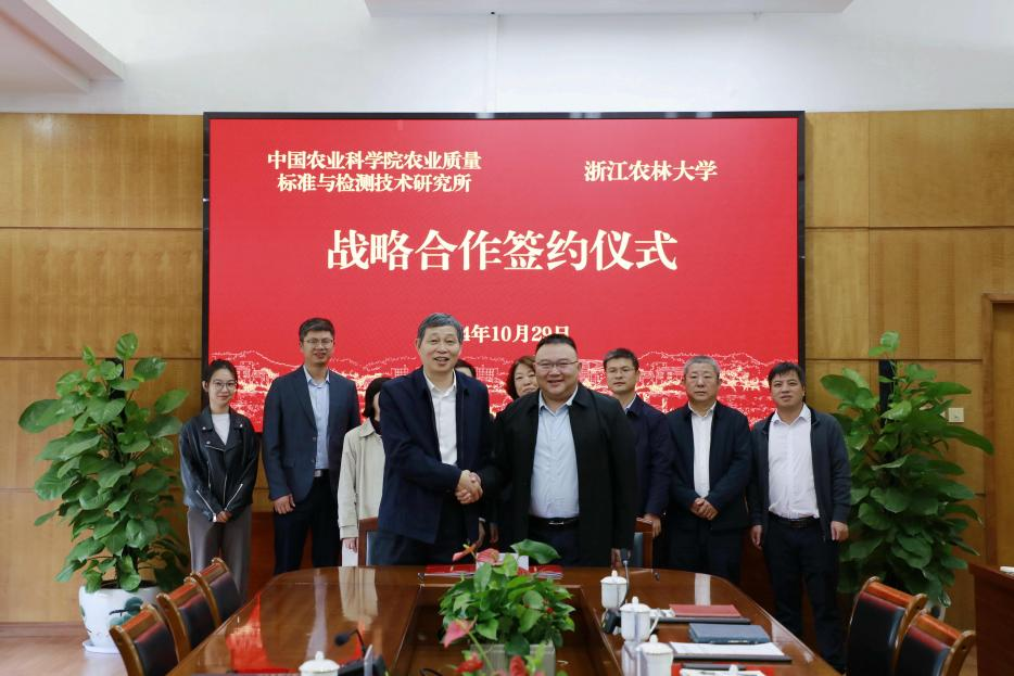 10月29日,我校與中國農(nóng)業(yè)科學院農(nóng)業(yè)質(zhì)量標準與檢測技術(shù)研究所全面戰(zhàn)略合作框架協(xié)議簽約儀式在東湖校區(qū)舉行。