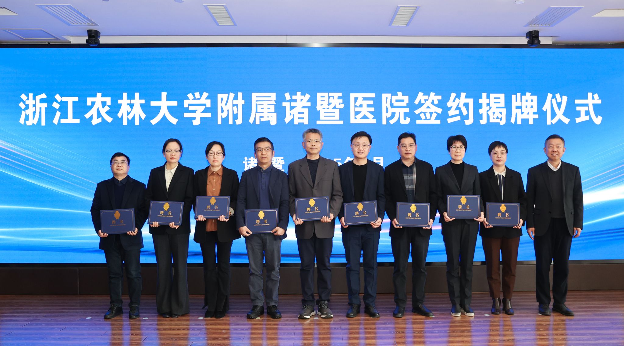 浙江農林大學聘請諸暨市中醫醫院9名醫務人員為學校兼職教授,吳家勝頒發聘書。