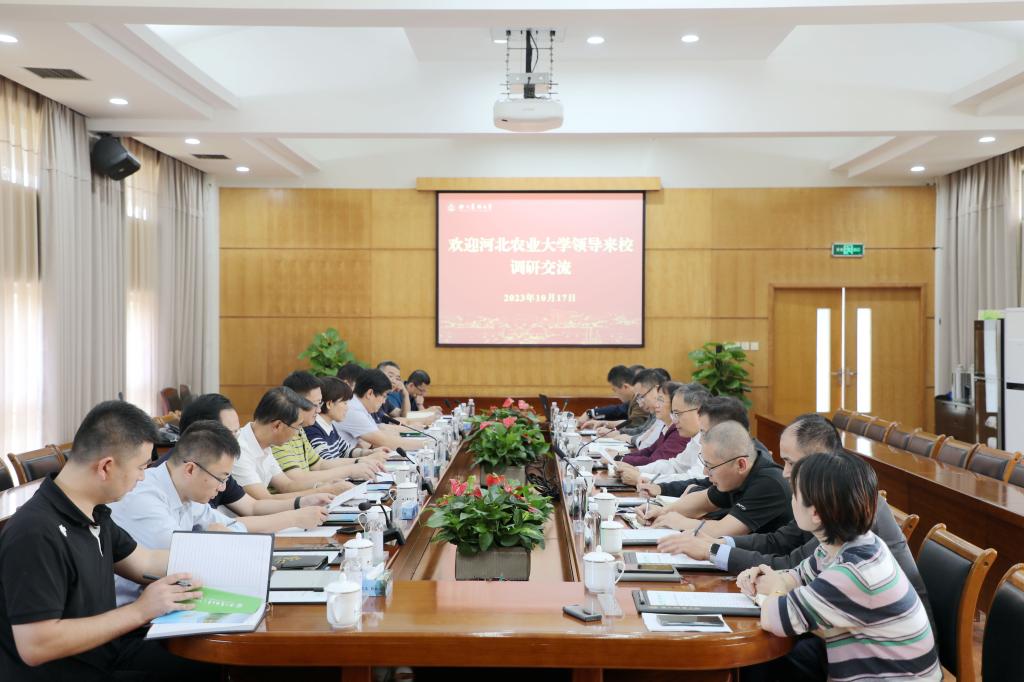 10月17日,河北農(nóng)業(yè)大學(xué)副校長客紹英、趙建軍、桑亞新一行來校調(diào)研交流。副校長沈月琴、胡祖吉出席調(diào)研座談會(huì)。