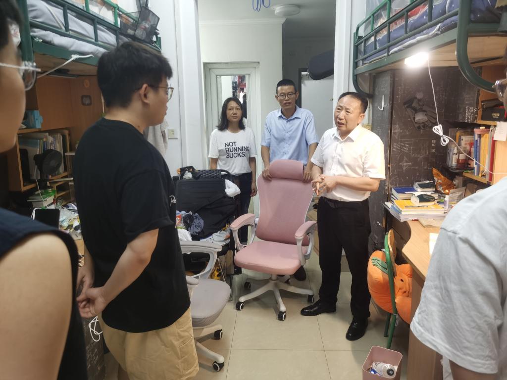 連日來,校領導深入學生寢室走訪,向他們表達關懷和問候,并與同學們親切交談。