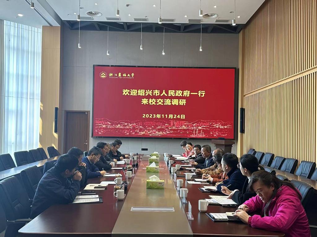 11月24日,紹興市農業農村局、供銷總社、商務局等單位負責人來我校調研山核桃香榧產業發展情況。副校長吳家勝出席,科技處、社會合作處、研究生院、林學學科負責人及山核桃、香榧產業團隊的骨干成員參會。