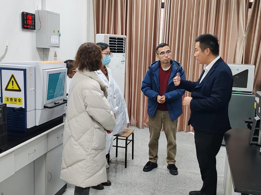 徐愛俊實地查看了分析測試中心的實驗室建設(shè)和儀器設(shè)備運行情況,與儀器管理老師和測試學生就設(shè)備運行狀況、操作規(guī)范與使用體驗等進行現(xiàn)場交流。國家工程中心相關(guān)負責人匯報了中心建設(shè)過程、儀器設(shè)備配置、管理運行模式和未來規(guī)劃等情況。