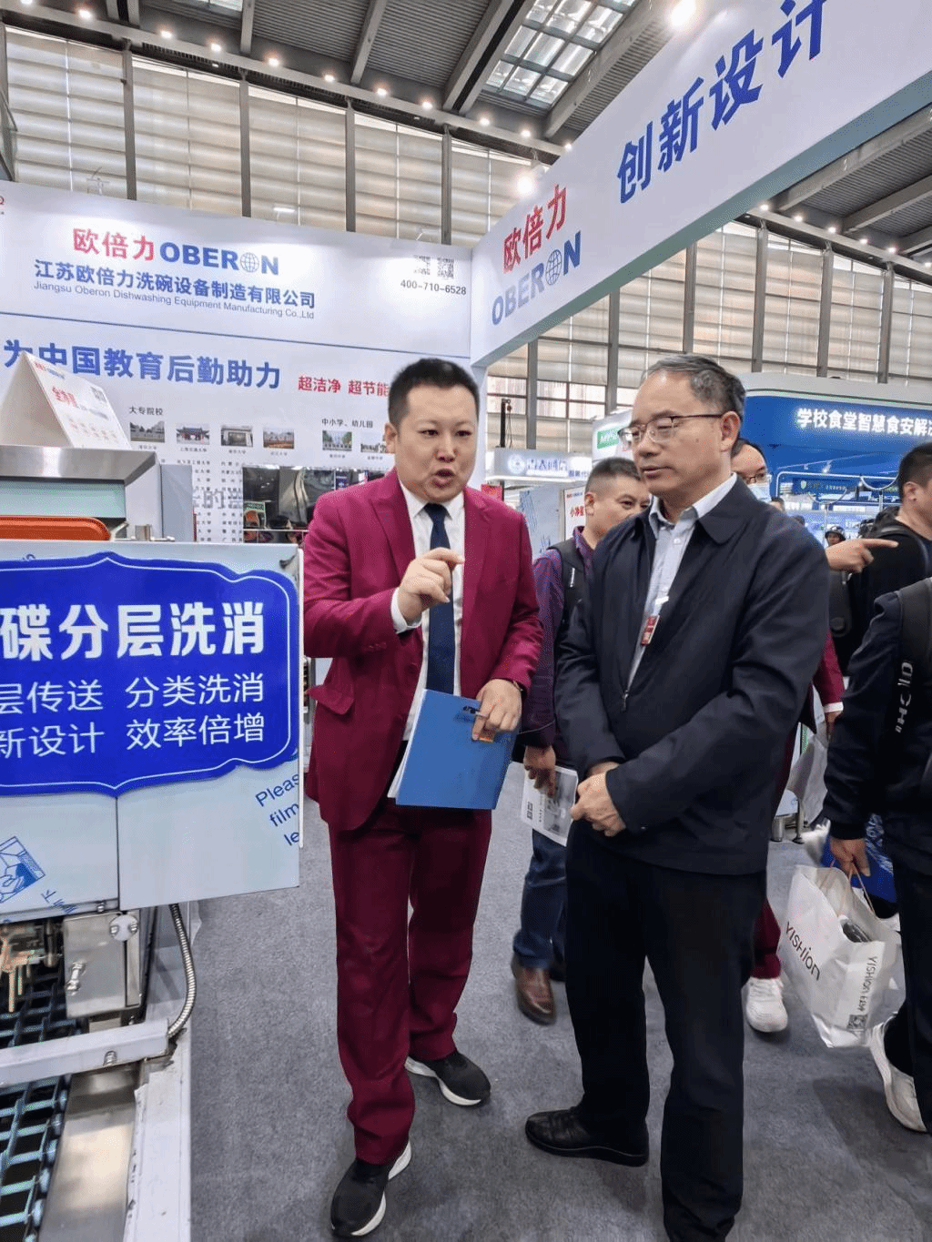 展會期間,胡祖吉還前往展區現場觀摩,與展商深入交流,了解數字化、智慧化設備和產品,以及人工智能、人臉識別、物聯網等創新技術在校園服務中的應用。