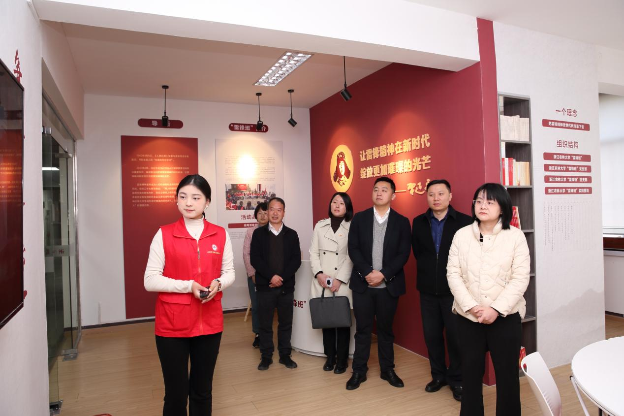 徐夢(mèng)周一行還參觀了浙江農(nóng)林大學(xué)團(tuán)校教學(xué)基地——馬克思主義學(xué)院“紅藏室”、第八批全國(guó)學(xué)雷鋒活動(dòng)示范點(diǎn)——浙江農(nóng)林大學(xué)雷鋒班。校團(tuán)委、馬克思主義學(xué)院、文法學(xué)院相關(guān)負(fù)責(zé)人陪同調(diào)研。