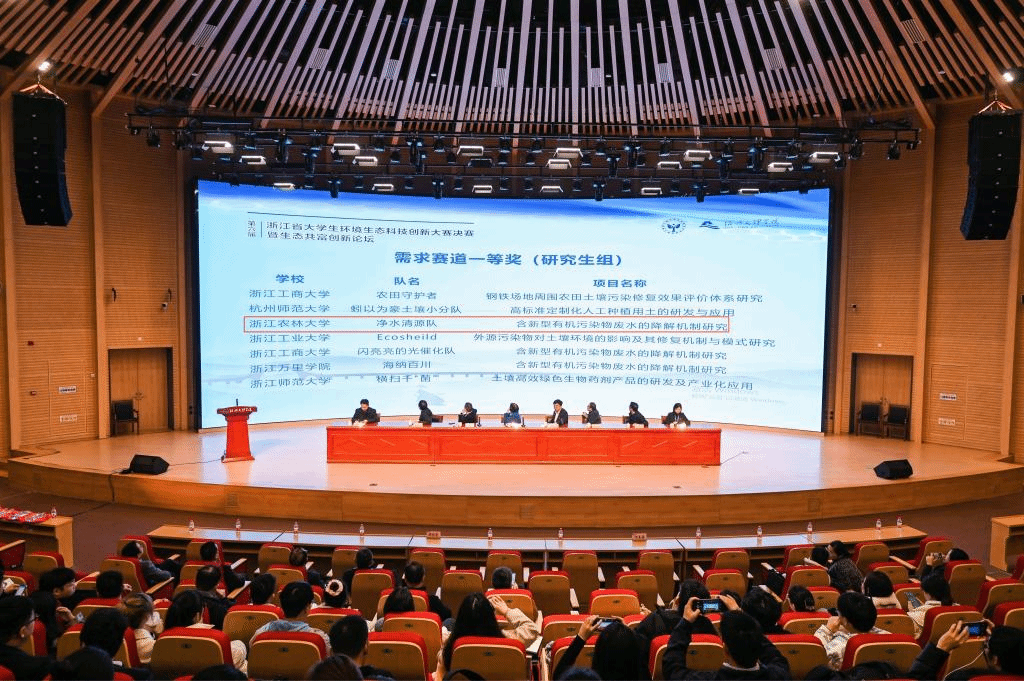 浙江省大學生環境生態科技創新大賽是由浙江省教育廳、浙江省土壤肥料學會、浙江省生態學會共同主辦的省級一類學科競賽,旨在倡導生態文明理念,引導大學生關注熱點環境與生態問題,尋求解決環境生態問題的有效方法及措施,提高大學生的生態環境保護和創新意識。