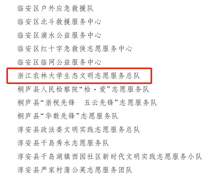 近日,杭州市精神文明建設(shè)委員會(huì)辦公室發(fā)布《關(guān)于公布2023年度杭州市新時(shí)代文明實(shí)踐志愿服務(wù)各類最美典型名單的通知》,“浙江農(nóng)林大學(xué)生態(tài)文明志愿服務(wù)總隊(duì)”獲評(píng)2023年度杭州市新時(shí)代文明實(shí)踐“最美志愿服務(wù)組織”,“服務(wù)總隊(duì)”隊(duì)員、集賢學(xué)院新工科求真實(shí)驗(yàn)班201班寧奧祥同學(xué)獲評(píng)“最美志愿者”。