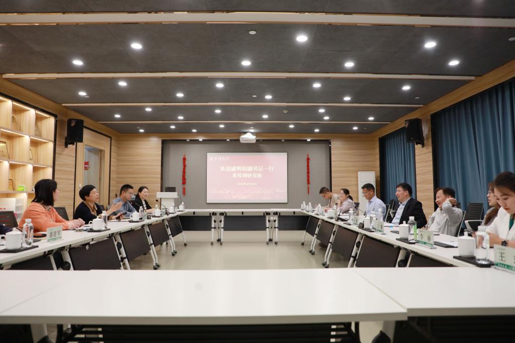 4月18日下午,杭州電子科技大學(xué)黨委副書記戚明鈞一行來(lái)校調(diào)研交流。校黨委副書記施美紅陪同調(diào)研并主持座談會(huì)。