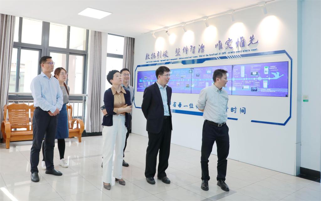 座談會(huì)前,戚明鈞一行還參觀了“一庫(kù)一表一次”應(yīng)用系統(tǒng)展示走廊、心理健康教育中心。