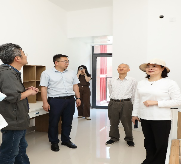 會前,陳思靜、部分專家對D區學生項目現場進行踏勘,還對B11、B12號學生宿舍項目完成情況進行綜合檢查,對項目的完成情況給予了充分肯定。
