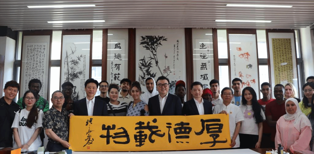 5月14日下午,中國硬筆書法協會主席張華慶受邀來校,助力我校國際生國情教育名師工作室“感知中國大書法藝術”文化交流活動。副校長吳家勝,中國硬筆書法協會黨支部書記李冰、執行秘書長梁秀,臨安區硬筆書協名譽主席余成云、主席張世文、副主席葉偉芳等應邀參加活動。來自斯洛伐克、越南、印度尼西亞、摩洛哥、贊比亞、津巴布韋等國近50位留學生代表參加。