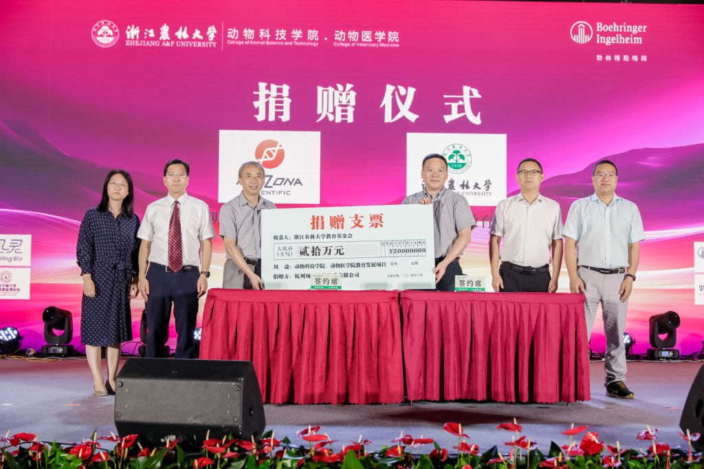 6月17日,杭州煬明生物技術(shù)有限公司捐贈儀式在東湖校區(qū)風(fēng)雨操場體育館舉行。副校長、校教育基金會副理事長胡祖吉,校黨委委員、動科動醫(yī)學(xué)院院長宋厚輝,煬明生物創(chuàng)始人劉建忠、曹雪梅,以及我校校友辦、國際處、組織部相關(guān)負責(zé)人和企業(yè)代表、動科動醫(yī)學(xué)院師生代表參加儀式。