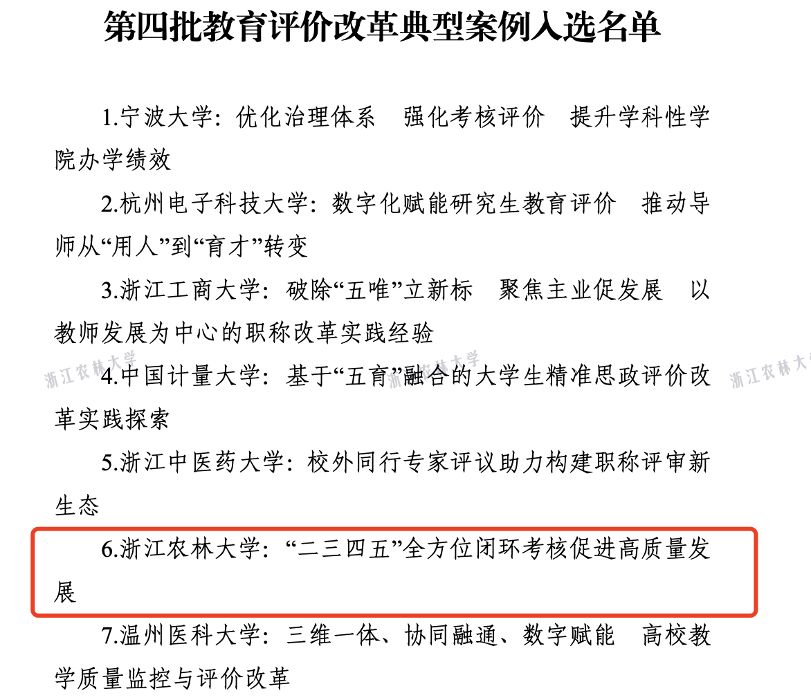 7月22日,浙江省教育廳公布了第四批教育評價改革典型案例,我校申報的《“二三四五”全方位閉環考核促進高質量發展》案例成功入選,這是學校數十年來不斷完善迭代考核評價管理體系的一個縮影和一次集中展示。