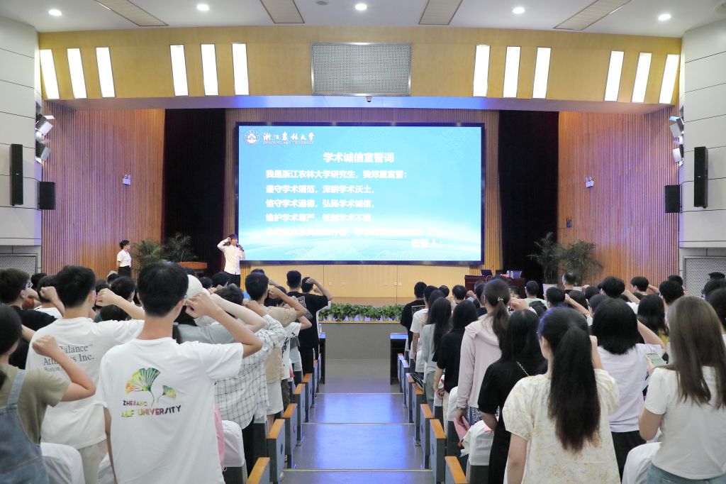 全體研究生新生滿懷著對未來學習和科研生活的憧憬與信心,在新生代表丁啟航同學的帶領下,在承諾書上鄭重簽字,并莊嚴宣誓:遵守學術規范,抵制學術不端,爭做優良學氣的踐行者,學術誠信的示范者。