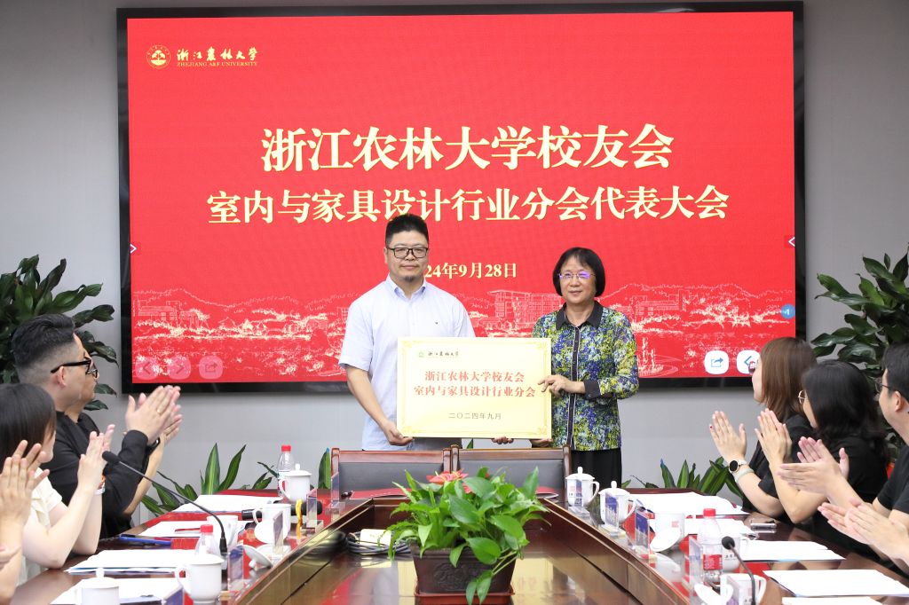 沈月琴為室內(nèi)與家具設(shè)計(jì)行業(yè)校友分會授牌。