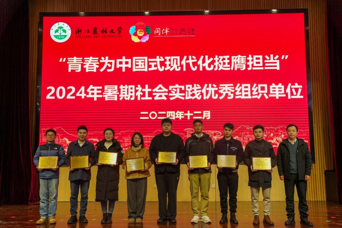 根據評委現場打分,最終評選出浙江農林大學“守護綠意,智破蟲圍——共筑生態防線”大學生暑期社會實踐團等10支隊伍為“十佳團隊”,浙江農林大學“綠美‘森’蹤 古木奇緣”大學生暑期社會實踐團等16支隊伍為“十佳提名團隊”,并為現代農學院等8個學院頒發2024年暑期社會實踐優秀組織單位獎。