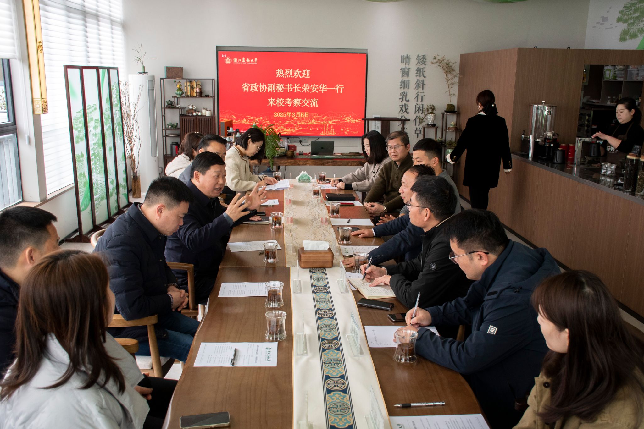 包松永對榮安華一行的到來表示歡迎,并向省政協長期以來對學校的關心和支持表示衷心感謝。在簡要介紹學?;厩闆r后,包松永表示,浙江農林大學是一所美麗與實力兼具的大學,希望雙方能夠加強涉茶領域交流合作,深入踐行“三茶”統籌發展理念,共同賦能我省歷史經典產業高水平傳承高質量發展。