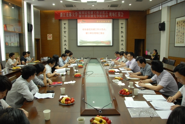 浙農林大新聞網訊 6月18日上午,學校召開校基層黨建工作示范點及窗口單位創先爭優活動現場匯報會,會議對學校7個基層黨建工作示范點進行驗收,對學校6個窗口單位進行“滿意窗口”評議。各基層黨建工作示范點支部書記及窗口單位部門負責人參加了會議。