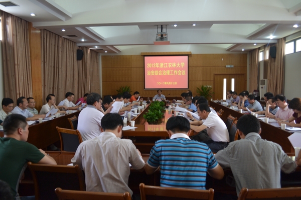 浙農林大新聞網訊 6月13日下午,學校在行政樓第一會議室召開治安綜合治理工作會議,校長周國模出席會議并講話。校黨委副書記余杰、副校長王自勇、臨安市政法委副書記程炳貴,以及各學院(部)黨委(總支)書記,機關各職能部門、圖書館負責人,后勤集團總支書記參加了會議。會議由余杰主持。