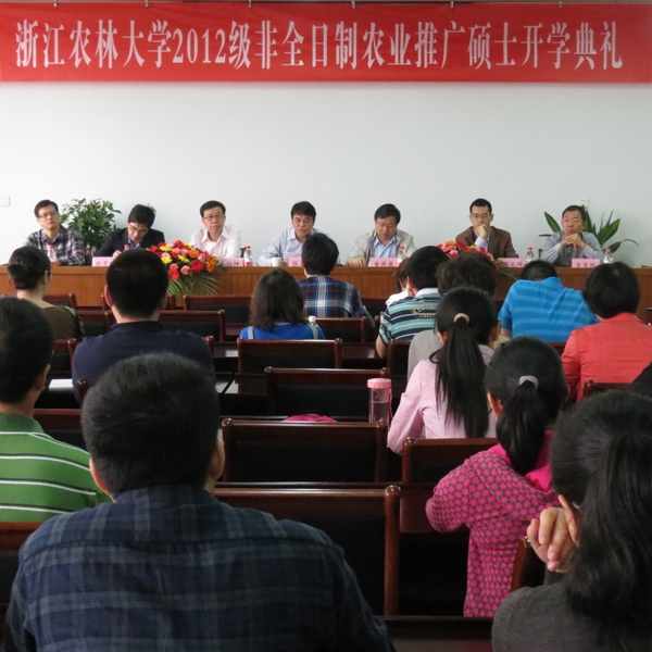 各相關(guān)學(xué)院負(fù)責(zé)人、導(dǎo)師代表、研究生秘書,研究生處工作人員和全體2012級非全日制農(nóng)業(yè)推廣碩士生參加了典禮。典禮上,導(dǎo)師代表李永夫副教授、老生代表林輝同學(xué)、新生代表?xiàng)钣峦瑢W(xué)先后作了發(fā)言。