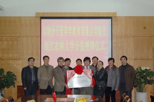 浙農(nóng)林大新聞網(wǎng)訊 3月17日,浙江大學(xué)動(dòng)物科學(xué)學(xué)院教授委員會(huì)成員一行18人來(lái)校考察交流,并對(duì)“動(dòng)物分子營(yíng)養(yǎng)學(xué)教育部重點(diǎn)實(shí)驗(yàn)室——浙江農(nóng)林大學(xué)分室”進(jìn)行授牌。副校長(zhǎng)金佩華出席,校黨委委員、科技處處長(zhǎng)陳永富主持交流會(huì)。