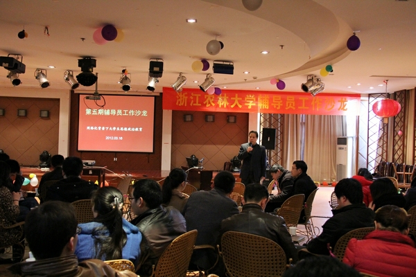 浙農林大新聞網訊 3月16日上午,我校第五期輔導員工作沙龍在活動中心工會演藝吧舉行。本期主題為“網絡化背景下大學生思想政治教育”。校辦、學工部、現代教育技術中心相關負責人,各學院黨委(總支、直支)副書記、輔導員80余人參加了沙龍。