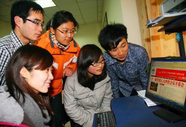 3月5日中午,在校團委的組織下,我校部分團學干部,正通過網絡學習、了解“兩會”的有關信息內容。