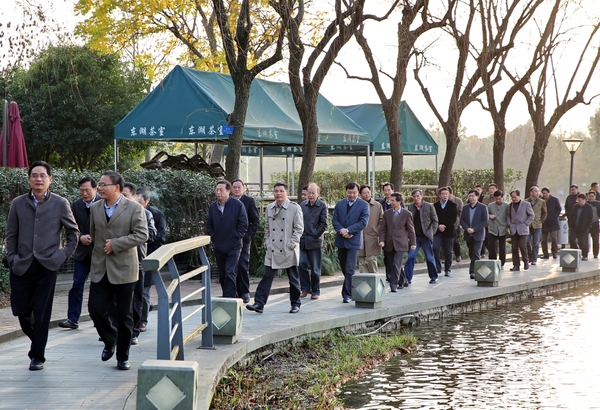 12月1日下午,省委黨校2014年第四期領導干部進修一班學員來我校考察。校黨委書記宣勇陪同考察。校黨委副書記方偉、余杰,副校長王自勇、鮑濱福等分別參加相關考察活動。