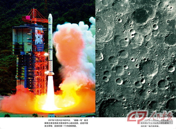 2007 年10月24日18 時05分,“嫦娥一號”繞月探測衛星在西昌衛星發射中心成功發射,這是中國自主研制、發射的第一個月球探測器。2007年11月26日,中國國家航天局正式公布嫦娥一號衛星傳回的第一幅月球圖像。