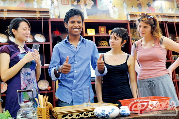 2012年6月30日,法國格勒諾布爾第二大學孔子學院的14名法國學生在湖北經濟學院茶酒文化實驗室學習茶文化。從2004年開辦第一家孔子學院至今,中國已在100多個國家和地區開設了350多所孔子學院和500多個孔子課堂,注冊學員達到50多萬人,這是中國教育系統第一次成建制、大規模走出去,成為講述中國故事的又一個窗口和平臺——孔子學院和孔子課堂拉近了中外院校的距離,也為學校發展創造了條件。