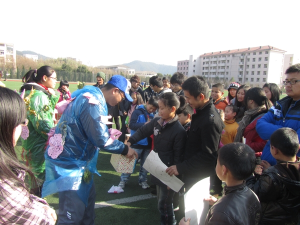 冬日的陽光灑滿了東湖校區的操場,12月26日,一群來自西林和附小的小朋友們與志愿者齊聚于此一起游戲。知識競猜、折紙飛機比賽,給自己的小隊標志涂色……志愿者們設計了一個又一個充滿童趣的小游戲,希望通過這些小游戲讓農民工子女度過一個充實而有意義的假期。