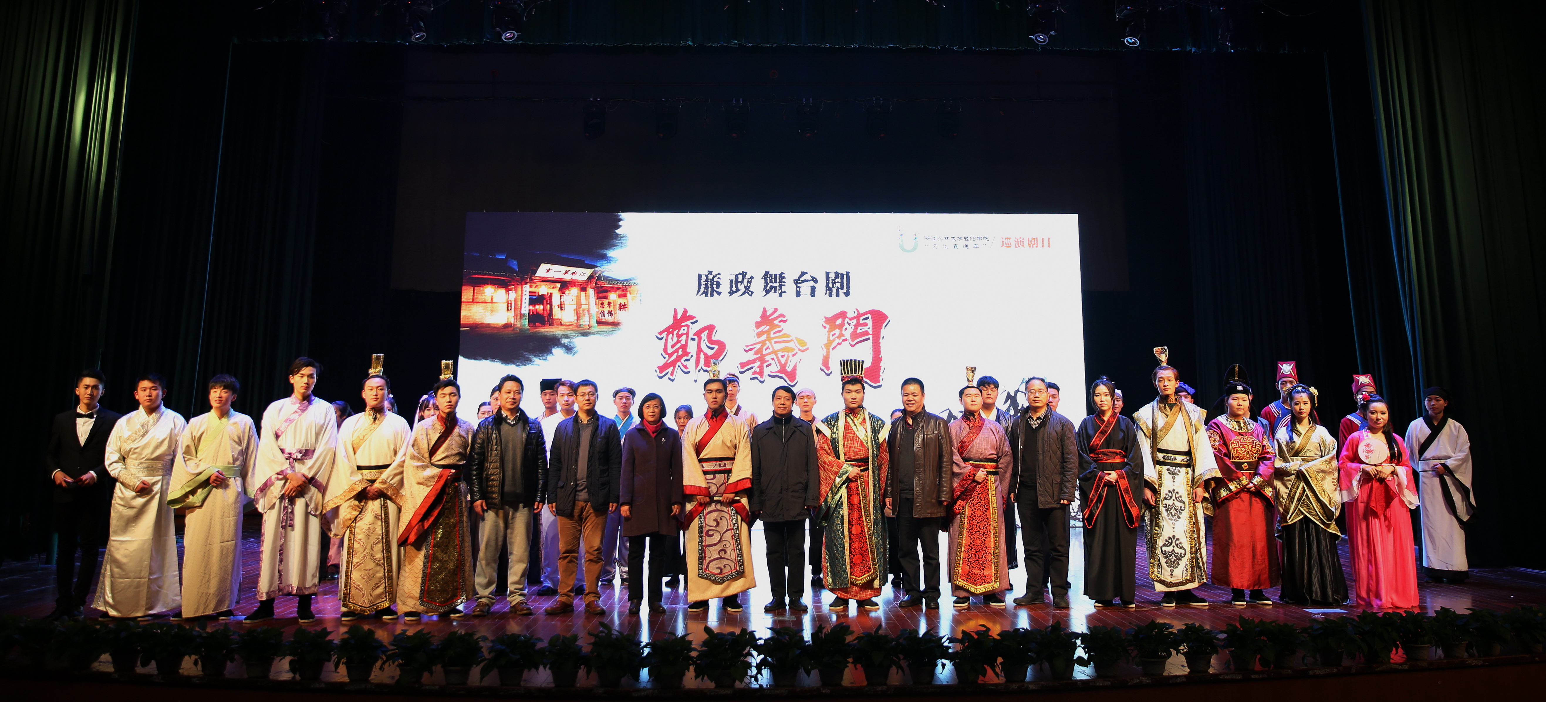 12月18日,由我校暨陽學院學生自編自導自演的大型原創(chuàng)廉政舞臺劇《鄭義門》在東湖校區(qū)影劇院上演。校黨政班子成員方偉、史永安、沈月琴、胡祖吉、童曉暉及全體中層干部,黨委(總支)委員,各支部書記和委員,師生黨員代表,離退休教師代表,民主黨派代表共1000多人觀看了演出。